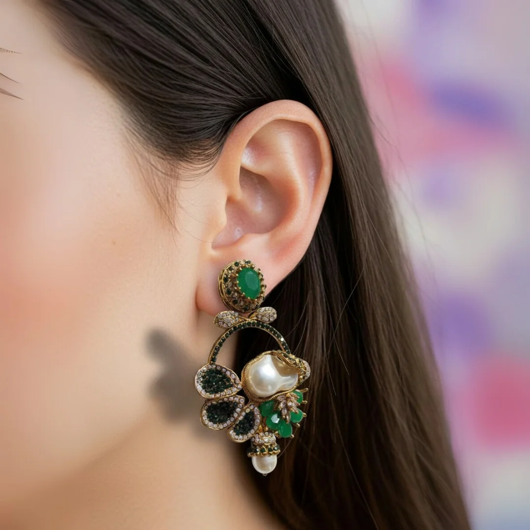 Experience the rich elegance of these unique green earrings, which combine artistic and natural elements.