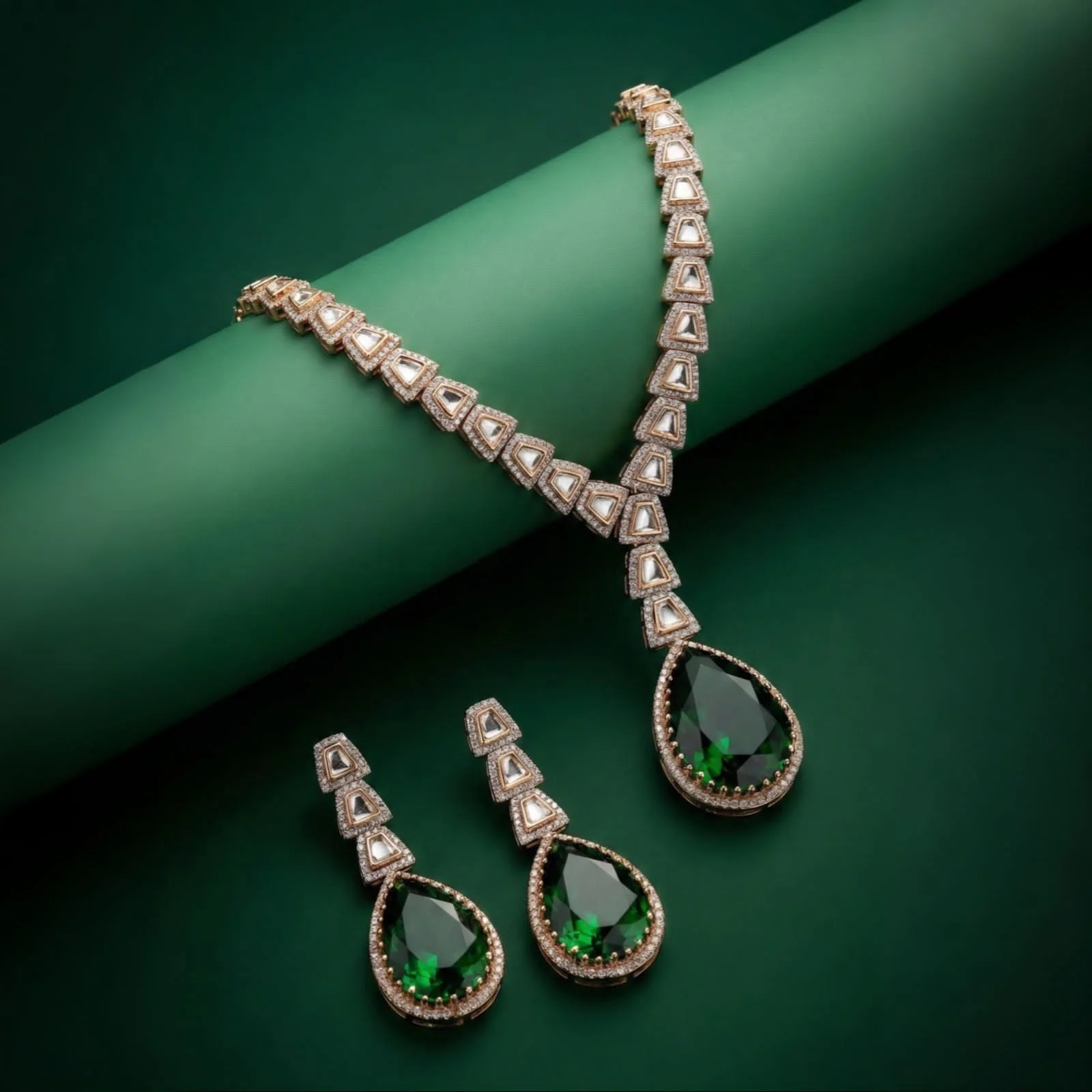 This gorgeous Drop Green Set, expertly completed with quality gold-plated polishing for a rich and brilliant effect, will add classic elegance to your jewelry collection.