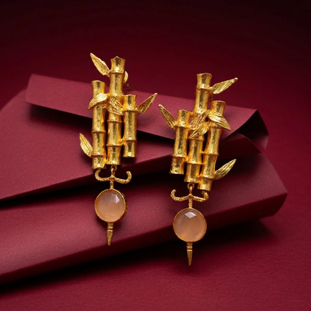With our stunning Glamour Earrings, which feature a delicate, glowing golden peach stone in the heart of an opulent golden frame, you may embrace elegance.