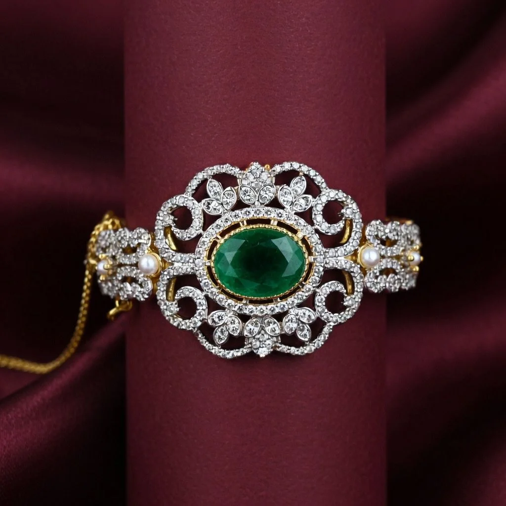 It produces the ideal harmony of color and sparkle thanks to its brilliant silver zircon accents and vivid green stone.