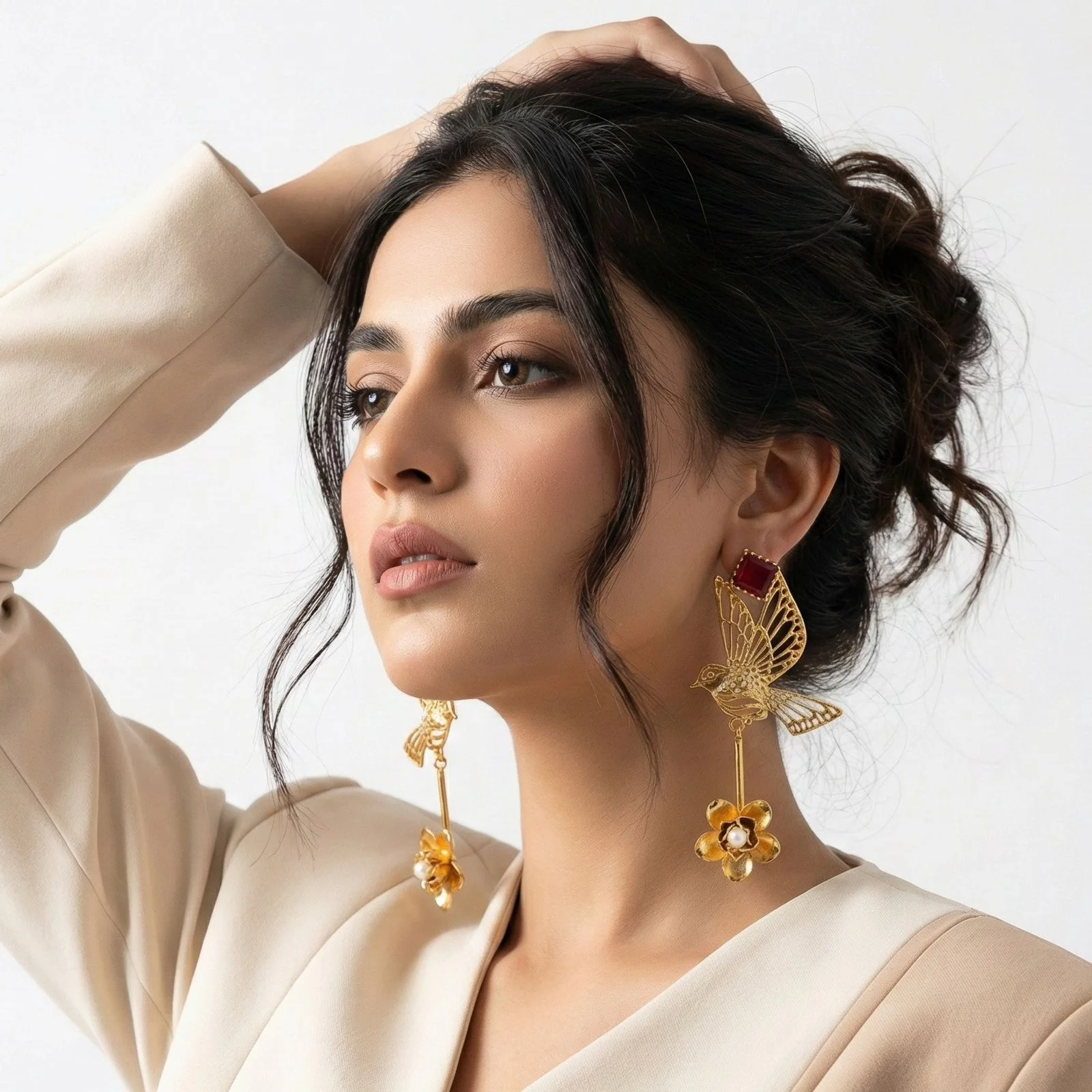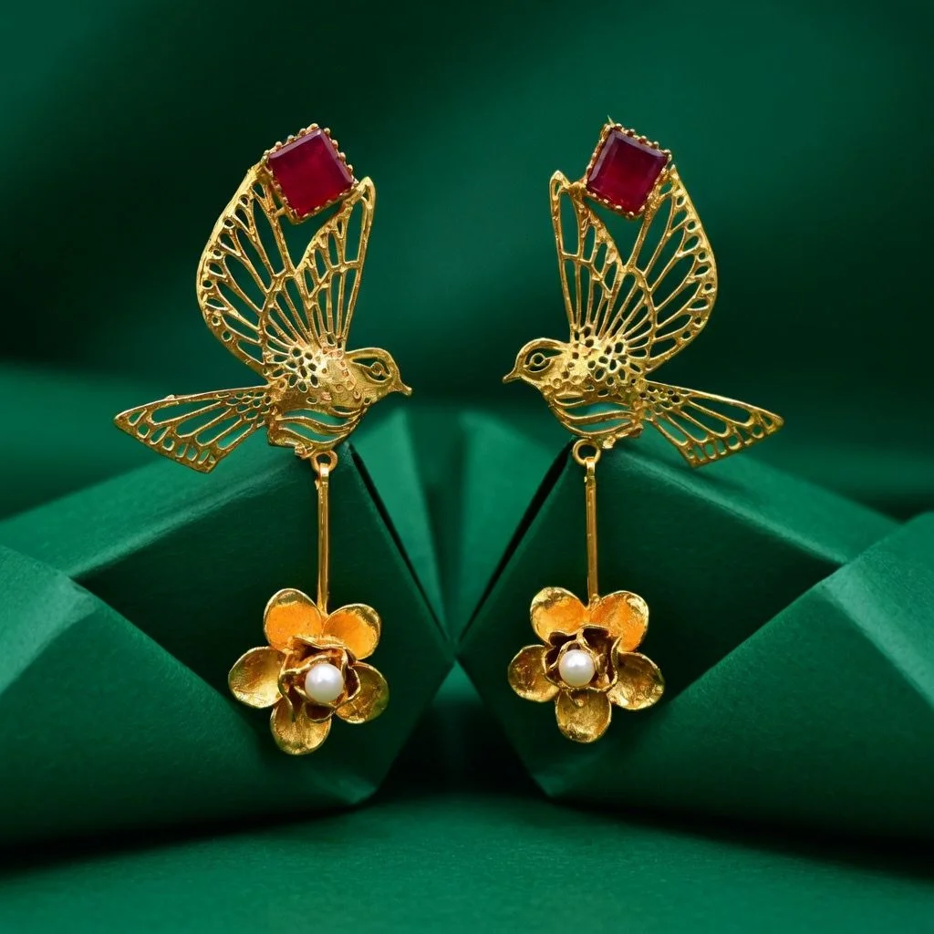 These earrings offer a distinctive fusion of heritage, beauty, and contemporary elegance, making them ideal for festive wear, special events, or thoughtful gifting.