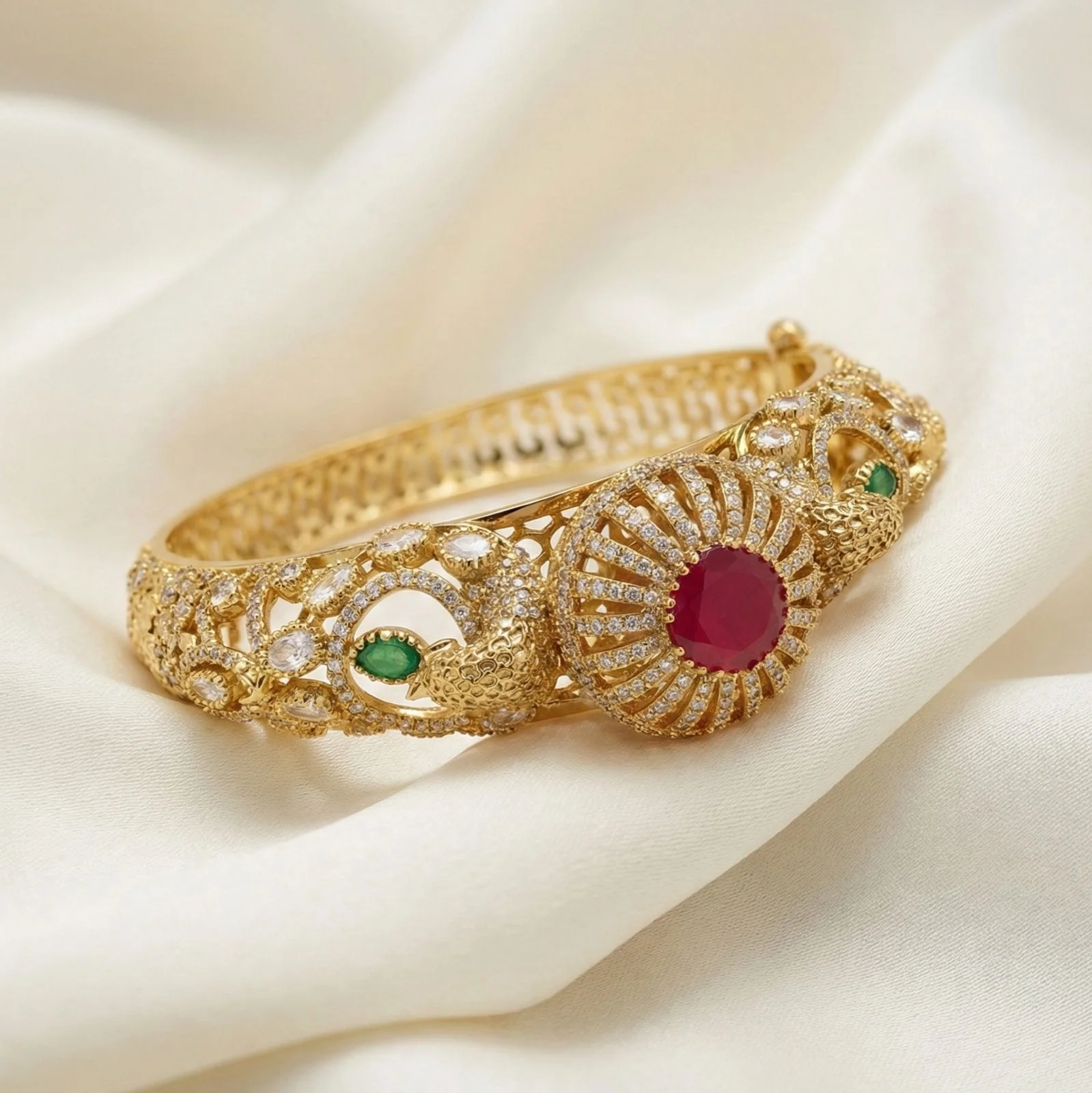 This bangle is made with a premium gold-plated band and has an openable design that makes wearing it simple and comfortable.