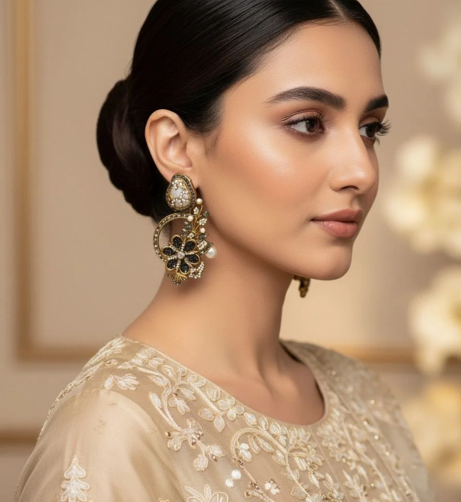 The Shimmer Black Earrings, a remarkable fusion of classic and contemporary charm, will make a big impression.